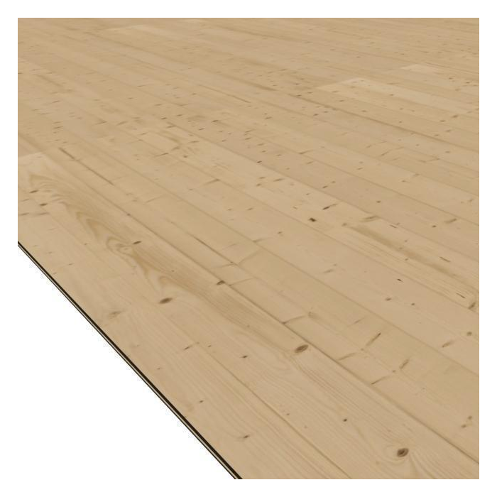 A padló minőségi fából (északi lucfenyő) készült, és kezeletlenül szállítjuk. Felhívjuk figyelmét, hogy a raklap nem vízálló. A fólia csak a fát védi a szennyeződésektől. Ezért a készletet a végső összeszerelésig száraz helyen, nem közvetlenül a földön, az időjárás (nedvesség, nap stb.) ellen védve tárolja. Ne tárolja fűtött helyen!