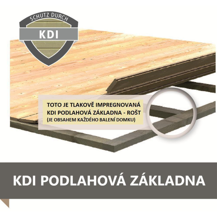 A padló minőségi fából (északi lucfenyő) készült, és kezeletlenül szállítjuk. Felhívjuk figyelmét, hogy a raklap nem vízálló. A fólia csak a fát védi a szennyeződésektől. Ezért a készletet a végső összeszerelésig száraz helyen, nem közvetlenül a földön, az időjárás (nedvesség, nap stb.) ellen védve tárolja. Ne tárolja fűtött helyen!