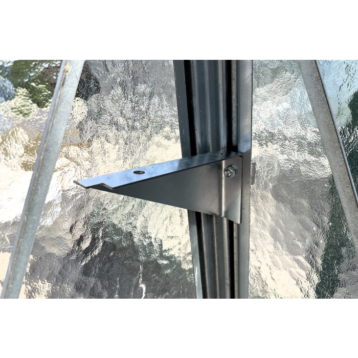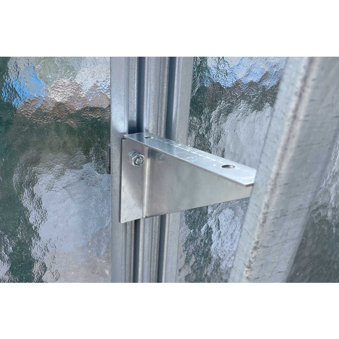 1 mm vastag, tűzgalvanizált lemezből készült polctartók Viva V6 üvegházhoz. A tartók polctámaszként szolgálnak azok számára, akik saját forrásból származó deszkákat vagy más anyagokat szeretnének felhasználni. A csomag 2 db (pár) ilyen tartót tartalmaz 1 db polc kialakításához. A 3 m hosszú (H7/3) üvegházba legfeljebb 4 db polc helyezhető el, így legfeljebb 8 db ilyen tartót használhat. Hosszabb üvegházak esetében a kialakított polc teherbírása max. 10 kg.