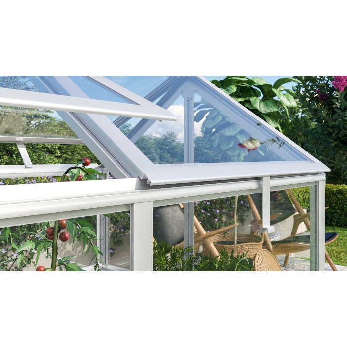 A VITAVIA GAMMA üvegház egy közepes méretű, robusztus üvegház a brit prémium üvegházgyártó VITAVIA GARDEN-től. Eloxált alumínium profilokból készül és 4 mm-es cellás polikarbonáttal üvegezett minőségi UV szűrővel. A minőségi anyagok ezen kombinációja kiváló hőszigetelést és ideális fényviszonyokat biztosít a növények számára.